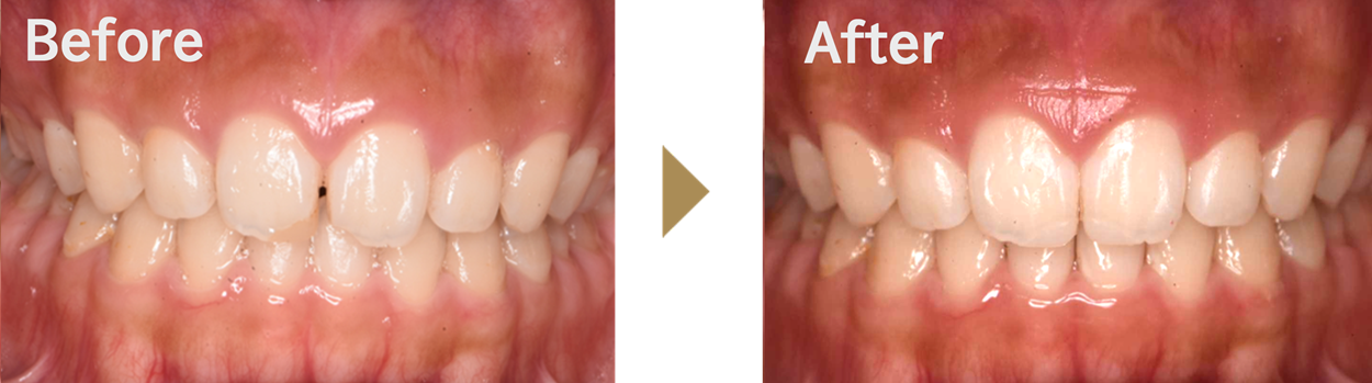 | 治療内容 | マウスピース矯正(前歯のみ)+ダイレクトボンディング |